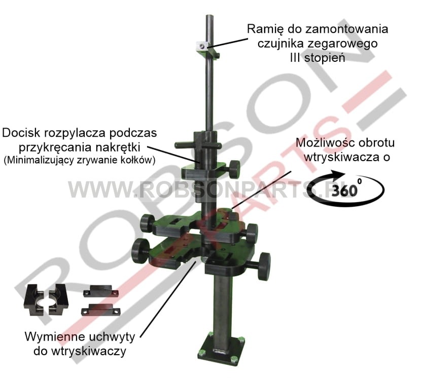 - Solidny uchwyt zapewnia stabilizacje, oraz zapobiega obracaniu się elementów wtryskiwacza podczas rozkręcania