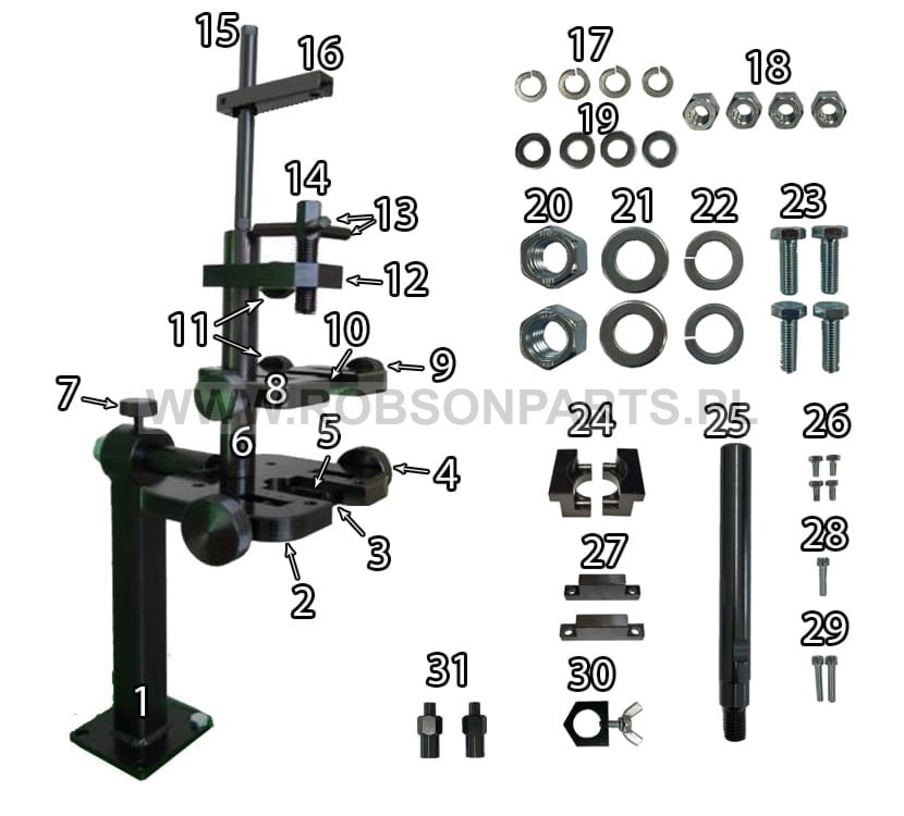 - Ramię umożliwiające montaż czujnika zegarowego do pomiaru skoku kulki ( III stopień Bosch )